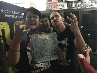 Kemudian band seterusnya, Insinner!! Memainkan irama Old School Death Metal kental didalam urat Entombed. Hahahahaha! Permainan yang sangat mantap dan bertenaga! Agigi Bob sebagai gitaris dan Wak Leh Diemorecrush di posisi bassist. Drummer dia saya dah lupa nama.... Maaf... Vokalisnya pon saya tak sempat nak temuramah. Vokalisnya bijak berinteraksi dengan crowd dengan jenaka. Terbaik!!! Saya sempat sambar keset mereka. Puas Hati bhai!!!